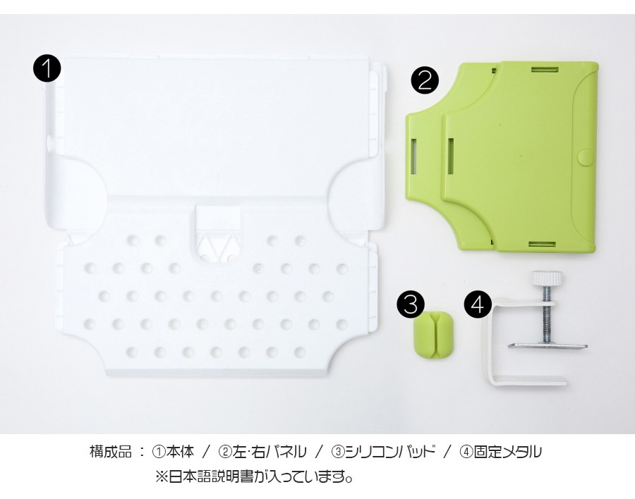 | 構成 | 日本語説明書 / 本体 / 固定メタル / シリコンパッド / 右・左パネル |