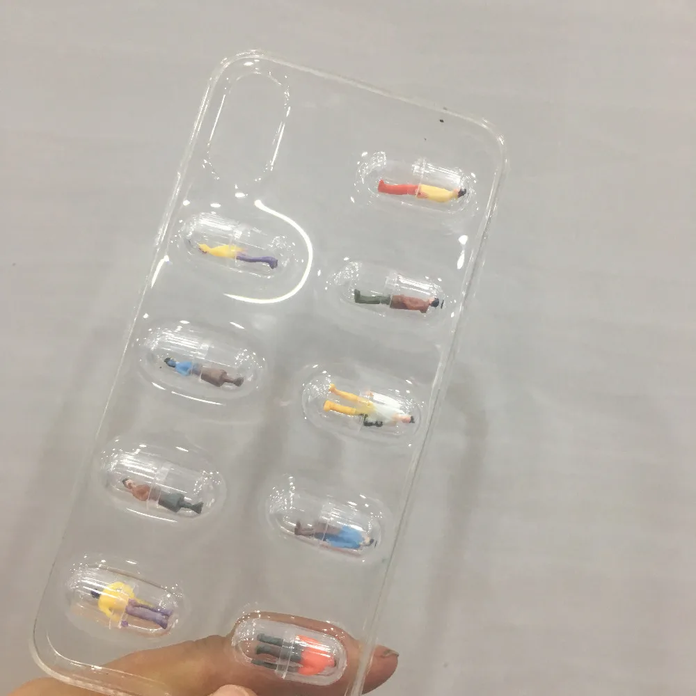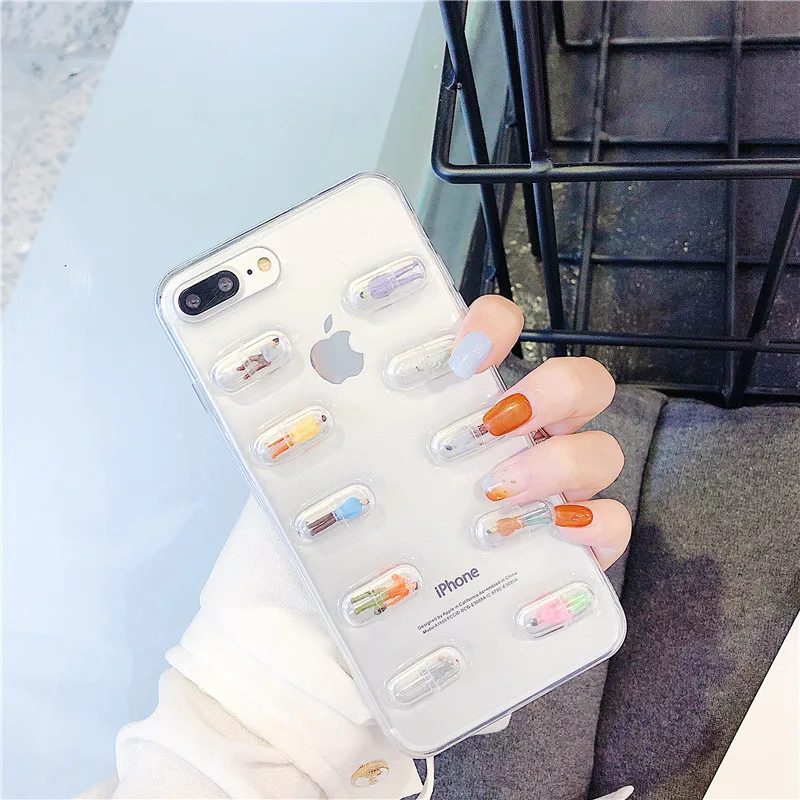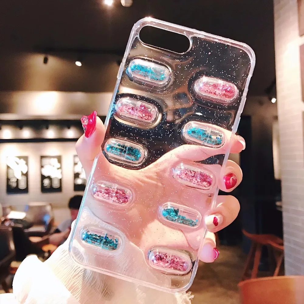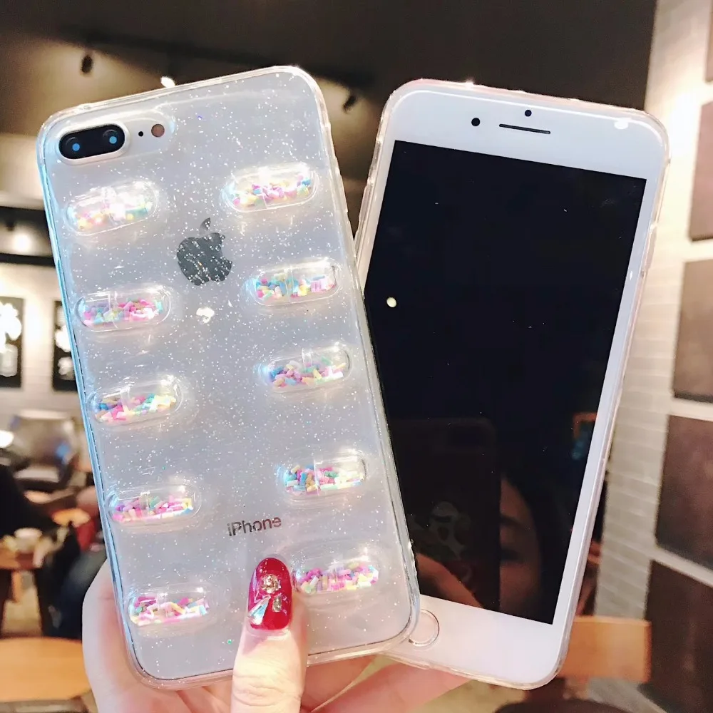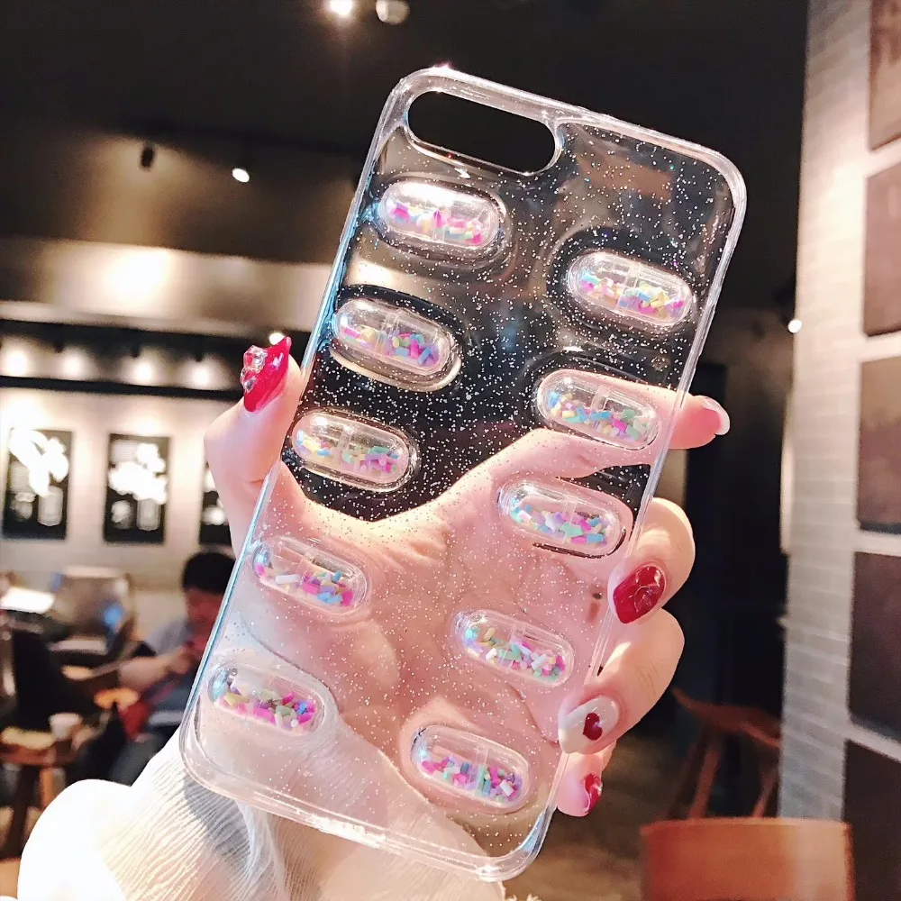 Features:3D Cute Glitter Capsule Pills Person Phone Case
