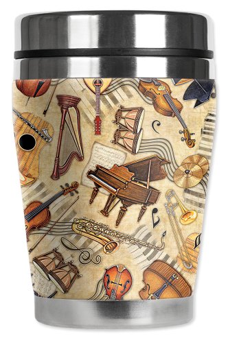 Mugzie Music Instruments "Mini" Travel Mug with Insulated Wetsuit Cover, 12 oz, Black