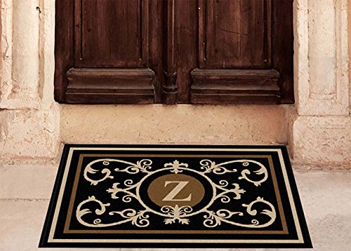 -. Feature : Monogrammed letter / Non-skid rubber backing keeps mat in place / Plush fibers resist moisture, dirt, debris and staining / Design is permanently injected into mat and won't wear off / Vacuum or sweep to clean