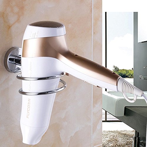 Cejpsellinggoods 【selling-sports】 개량 강력 흡반 헤어 드라이어 홀더 벽걸이 스테인레스 소형 내구성 고온으로 견딘 간단하게 인스톨 흡착뢰고 욕실 버스 용품 화장실 실버