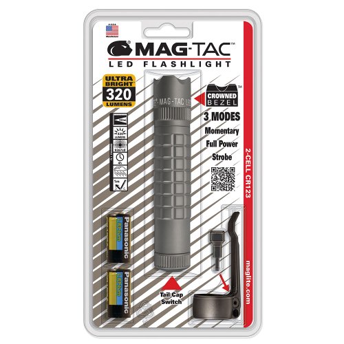 Studio : Mag Instrument Publisher : Mag Instrument Binding : Tools Home Improvement Product Description The Maglite MAG-TAC LED Tactical Flashlight is a rugged light made to rival the very best tactical-grade flashlights - the kind you might pay several times more for -image in its performance, durability, appearance and oval quality. Powered by extreme-performance lithium CR123 batteries, the Maglite MAG TAC Flashlight is a fast-handling light that will be the first thing you reach for when it's time to move out. The light features a tactical tail cap switch that lets you activate it using the previously employed beam setting. 0