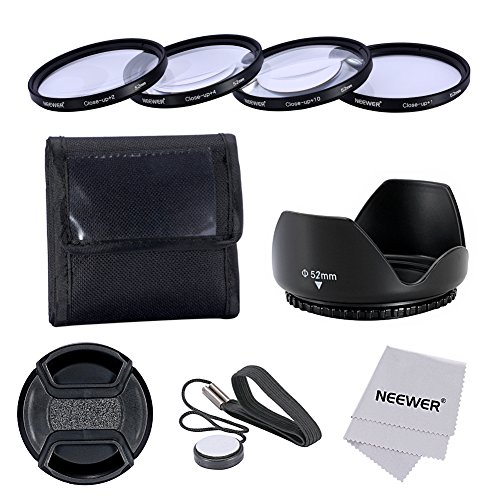Neewer 52MM Professional Close-up Macro Accessory Kit for NIKON D7100 D7000 D5300 D5200 D5100 D5000 D3300 D3200 D3100 D3000 D90 D80 DSLR Cameras - Includes Macro Close-Up Set (+1, +2, +4, +10)+ Filter Carrying Pouch + Tulip Flower Lens Hood + Center