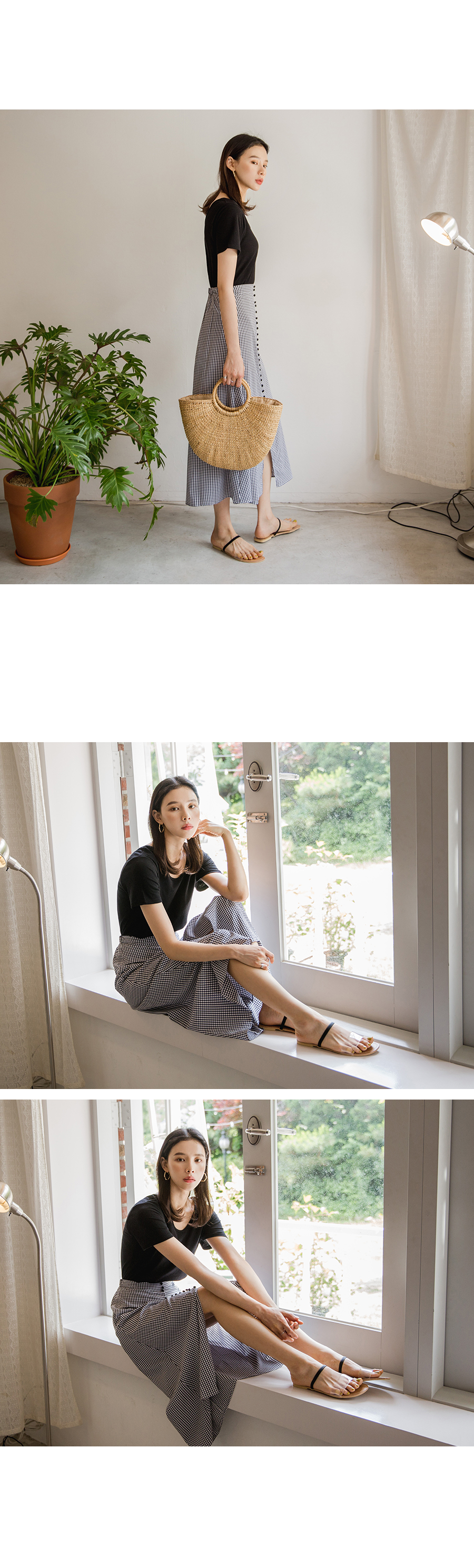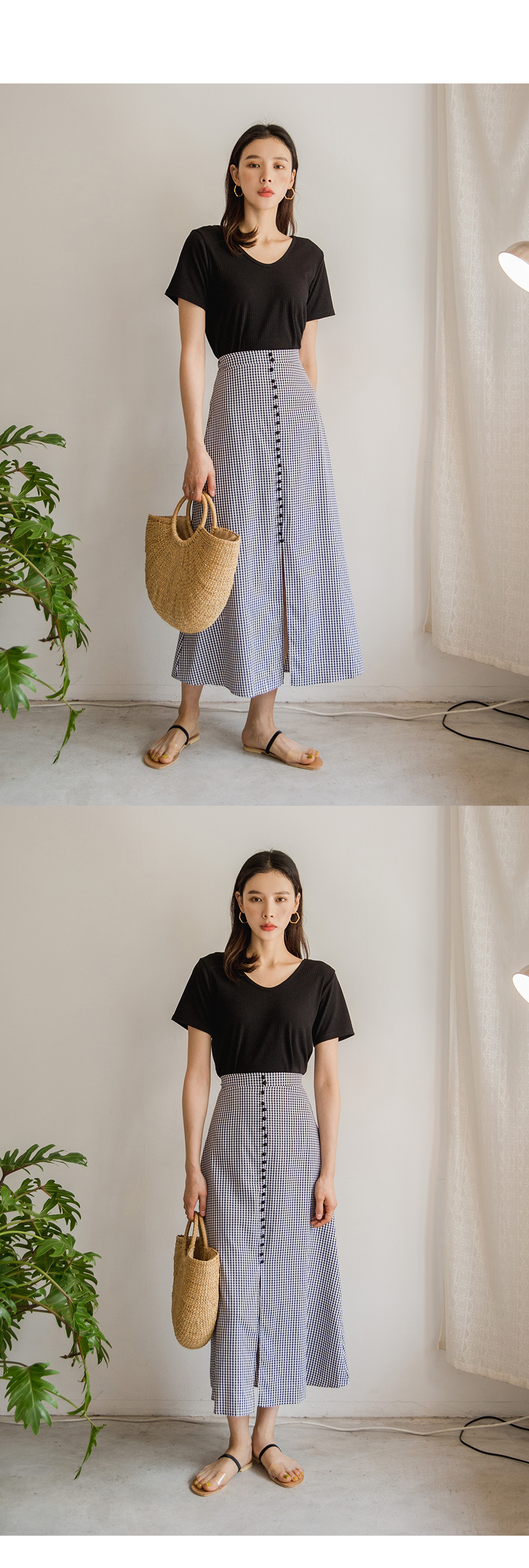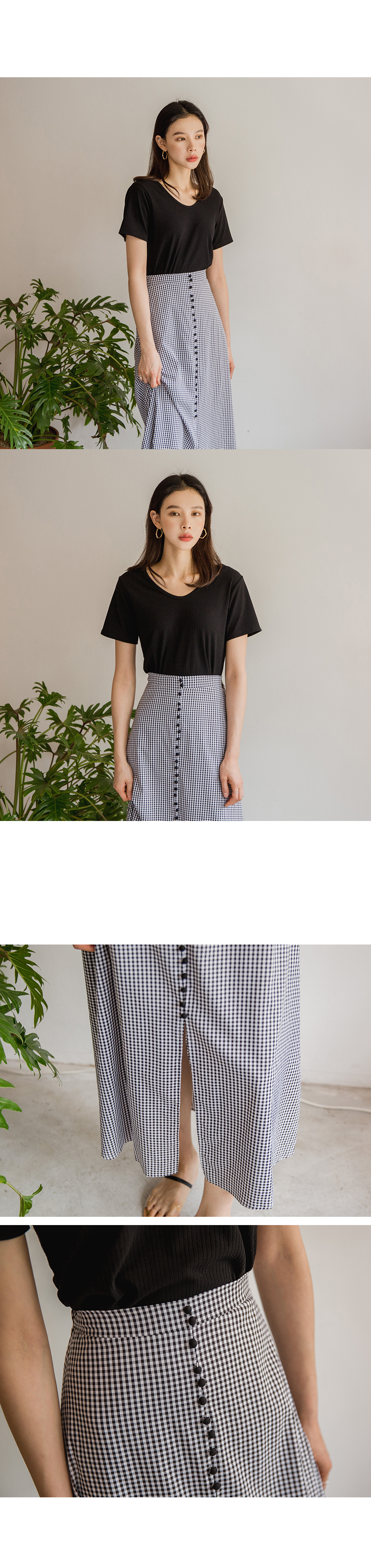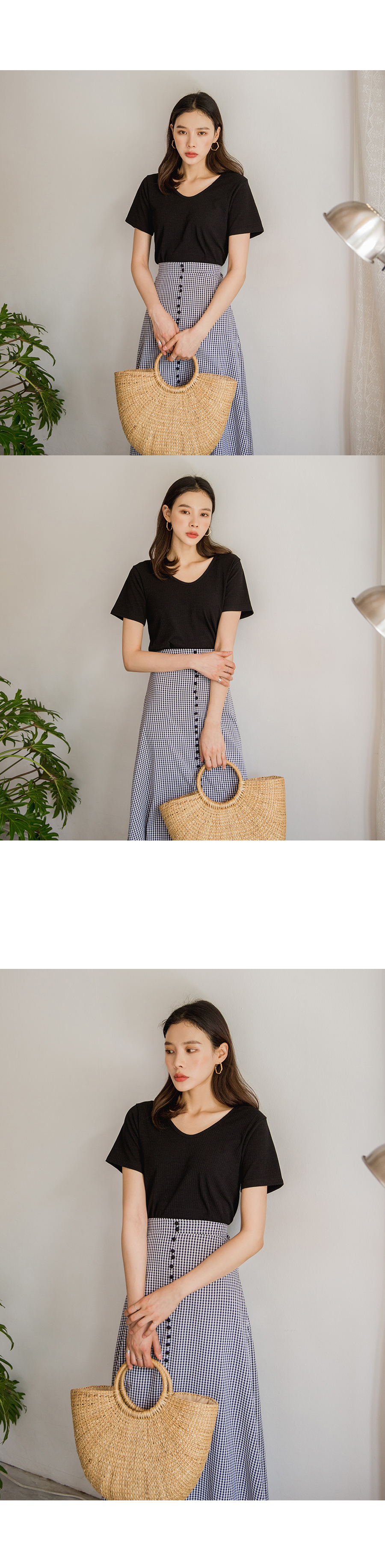 MD COMMENT베이직하면서도 페미닌한 무드의양브이 티셔츠입니다 쫀쫀한 텐션감으로 바디라인을 슬림하게 잡아주어여성스러운 느낌을 강조해줍니다 V네크라인으로 시원보이면서 목선을 여리여리하게 연출해주어요 베이직한 디자인으로 다양한 종류의 하의와도 매치하기 쉬워데일리하게 즐기식좋은 아이템이에요!