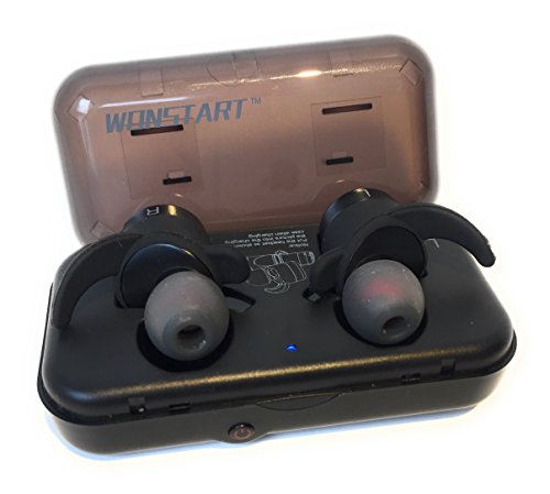 True Wireless Bluetooth Headphone With Charging Case. Noise Reduction. Charge Time 1 hour. Charging Case Can Charge Earbuds up to 5 times on a Single Charge