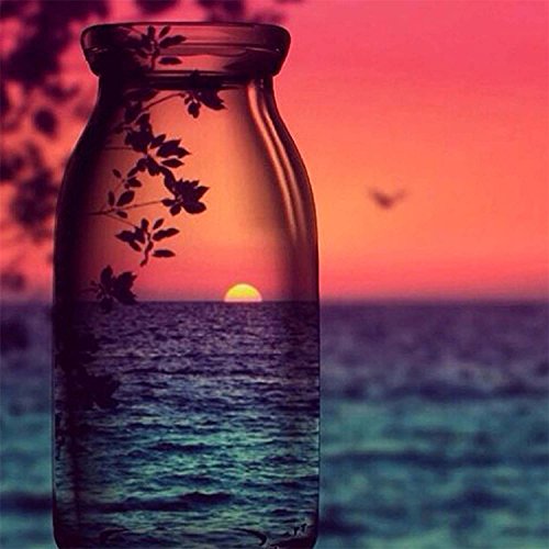 21secret 5D Full Drill Diamond Diy Painting Handmade Dusk Sea Scenery Sunset Seabirds in the Bottle Cross Stitch Home Decor Embroidery Kit