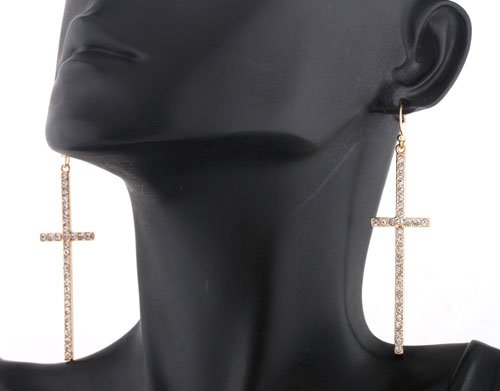 - Title : 2 Pairs of Gold with Clear Iced Out Ellongated Style Cross Dangle Earrings