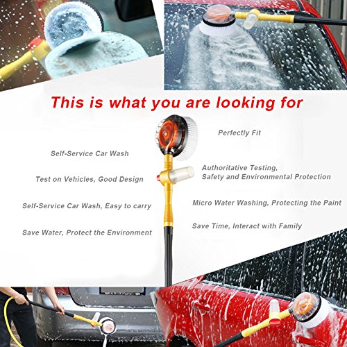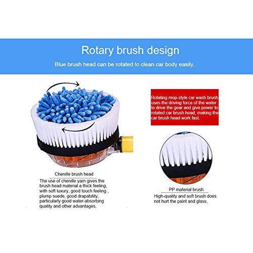 -. Feature : ✔Automatic Rotation Water Outlet No Need Electricity, Save Time And Energy, Water Flows Into The Pipe, High-pressure Driving Force Of Water To Push The Gear And Make It Work Automatically / ✔Rotary Mop-style Design, Soft and Plump Blue Chenille Brush Head Can Clean Thoroughly, Particularly Great Water-absorbing Capacity, Protecting The Paint / ✔Micro Car Washing Machine, Spray Foam With Putting The Detergent Into The Box When You Wash Your Vehicle / ✔High-quality Good Design Self-service Car Wash, Easy To Carry, Safety And Environmental Protection / ✔Three Hydraulic Levels Available, Choose The Suitable Level Base On Your Requirements Of Water Force