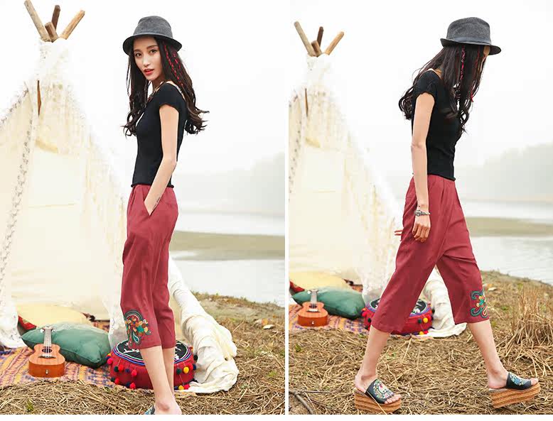 花朵刺绣休闲七分裤
