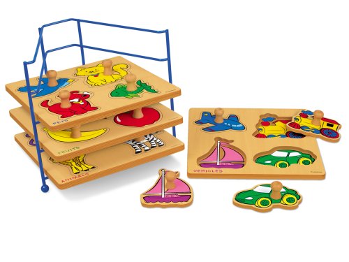 -. Feature : These colorful wooden puzzles are perfect for beginners / Each puzzle piece has large, easy-to-grasp knobs / Children boost motor skills while building eye/hand coordination / For ages 12 months-4 years