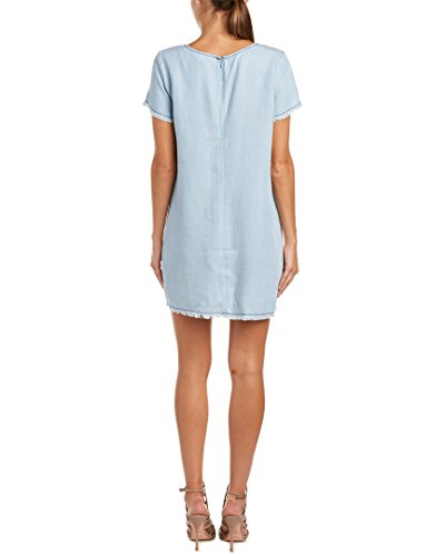 Product DescriptionSporty chambray shift dress in a faded blue wash. Featuring front pockets and frayed edge detail on the sleeves and bottom hemline.0