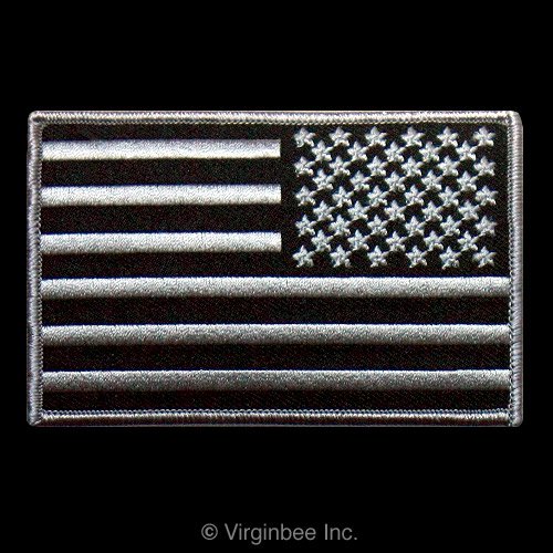 -. Title : AMERICAN BEST VELCRO USA FLAG REVERSED US EMBROIDERED PATCH SUBDUED BLACK-SILVER GRAY 4"x2.5" SIZE M