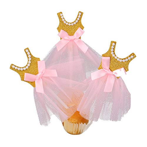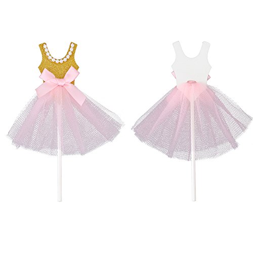 Looching 10pcs Lovely Princess Skirt Gold Pink Pearl Ballerina Cake Toppers-Ideal For Decoration
