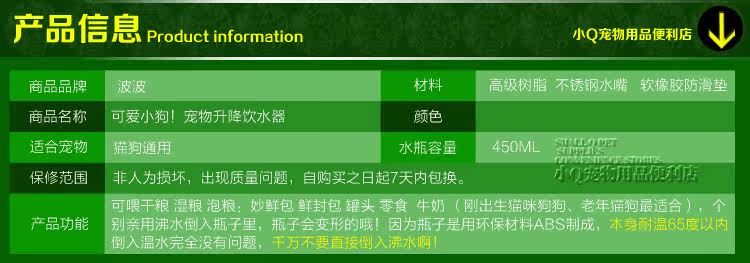 The top of the bottle can be adjusted freely, water faucet can be in the ground from arbitrary 10-25 cm regulation. Below is a bowl of dog food can be installed, four super anti-skid pad at the bottom of the water dispenser,excellent stability, also need not worry will be dog accidentally knocked over.