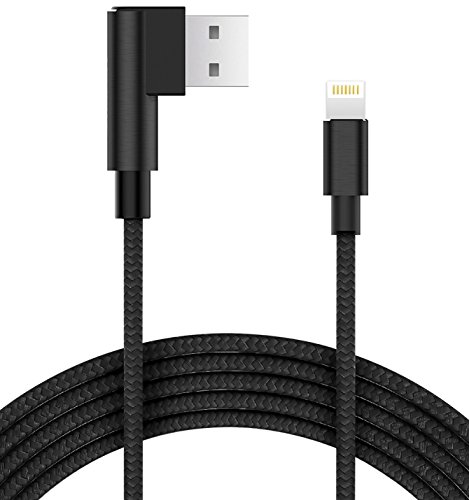 iPhone Charger Cable, Acessorz Nylon Braided Right Angle Elbow [1.5m/5ft 90-Degree] Reversible Metal Plug 8 Pin Lightning Sync & Fast Charging Cable Cord for iPhone, iPad, iPod (Black)