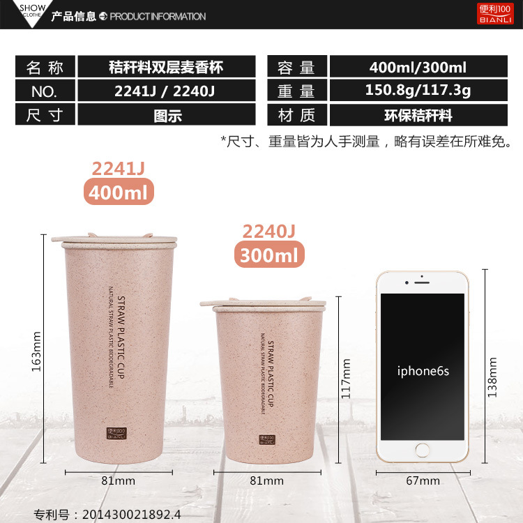 韩版简约小麦秸秆咖啡杯韩国随手创意塑料女学生可爱办公室水杯子