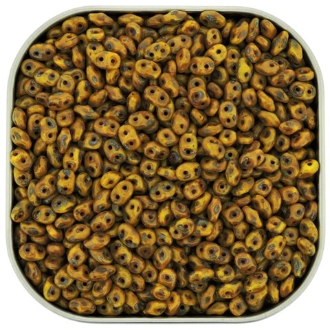 Czech SuperDuo Two-Hole Seed Crystal Beads 5.5x2.5mm Limon Picasso 22gram
