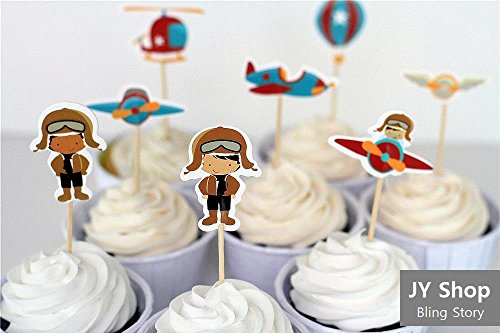 24pcs Retro Airplane Cupcake Toppers Cake Decorations Picks Hot Air Balloon Kids Birthday Party Baby Shower Candy Bar