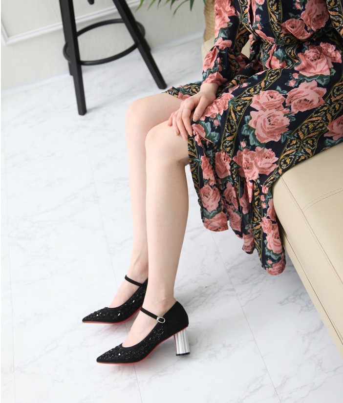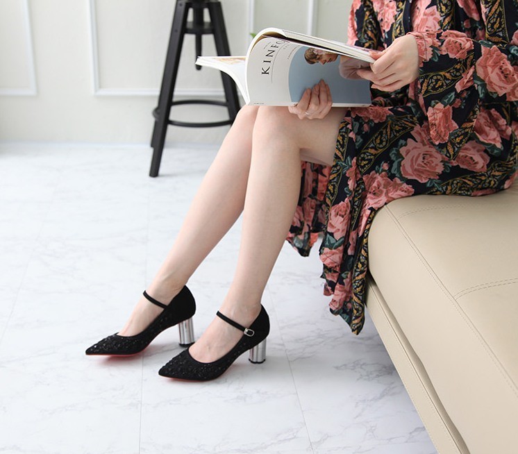 商品名:パンプス レディース レッドソール 太ヒール チャンキーヒール メリージェーンストラップ 2018 春 ファッション 靴 婦人靴