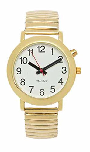 -. Binding : Watch -. Brand : LSS -. Department : Unisex-adult -. EAN : 0635797803697 -. Feature : Low vision watch with large high contrast face / Watch speaks the time and the date / Easy to set, watch speaks modes and numbers while setting / This watch has a male voice, optional daily alarm can be set / Dimensions: Watch case: 1 3/4" wide, Watch face: 1 3/8" wide, Band width: 7/8" -. Label : LS&S -. Manufacturer : LS&S -. MPN : 101116 -. PartNumber : 101116 -. ProductGroup : Watch -. ProductTypeName : WATCH -. Publisher : LS&S -. Studio : LS&S -. Title : LS&S XL White Face Gold Flex 1-Button Male Voice Talking Watch w/Date -. UPC : 635797803697
