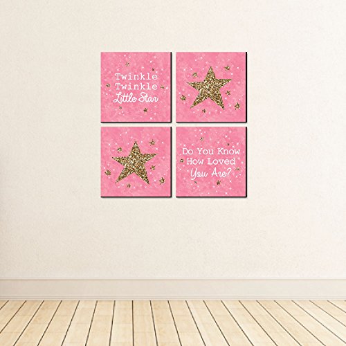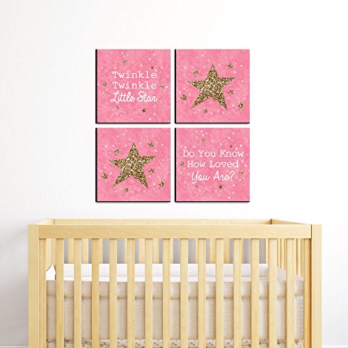Studio : Big Dot of Happiness, LLC Publisher : Big Dot of Happiness, LLC Binding : Kitchen Product Description Decorating for your little one's arrival is easy with this modern nursery decor set in the adorable Pink Twinkle Twinkle Little Star theme. Professionally printed Pink Twinkle Twinkle Little Star nursery wall art includes four coordinating prints that are designed on a durable foam board, making it lightweight and perfect for any child's room. The high-quality print matched with the black-edged standout board does not require a frame and will arrive ready-to-use as the perfect decoration for your baby's room. We've even included repositionable all purpose mounts so you can arrange and re-arrange this nursery wall art numerous times, getting your bundle of joy's room just right for their arrival. 0