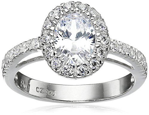 Platinum-Plated Sterling Silver Cubic Zirconia Oval Cut Halo Ring (1.65 cttw), Size 7