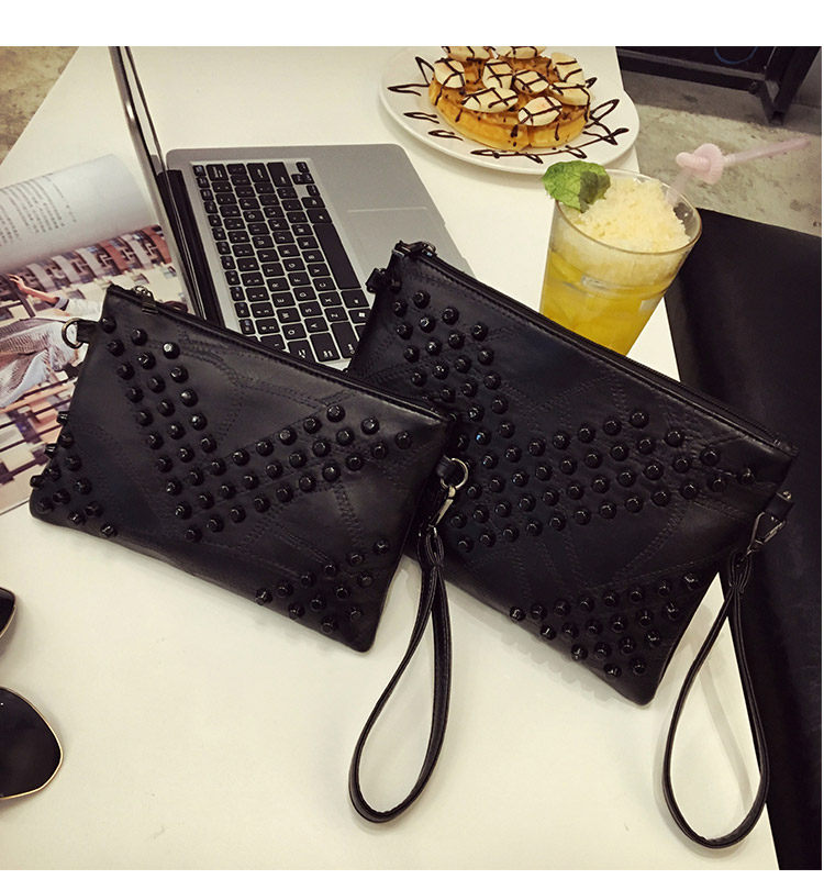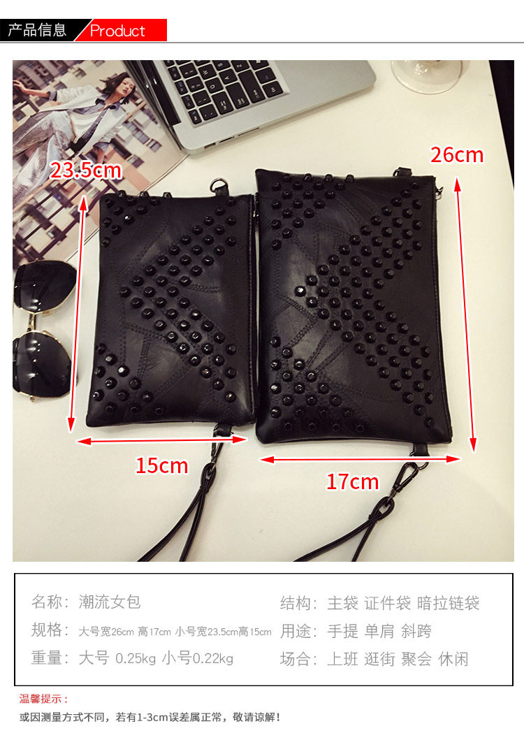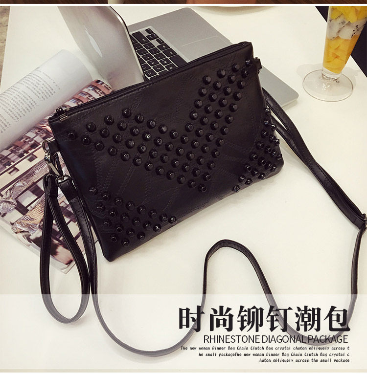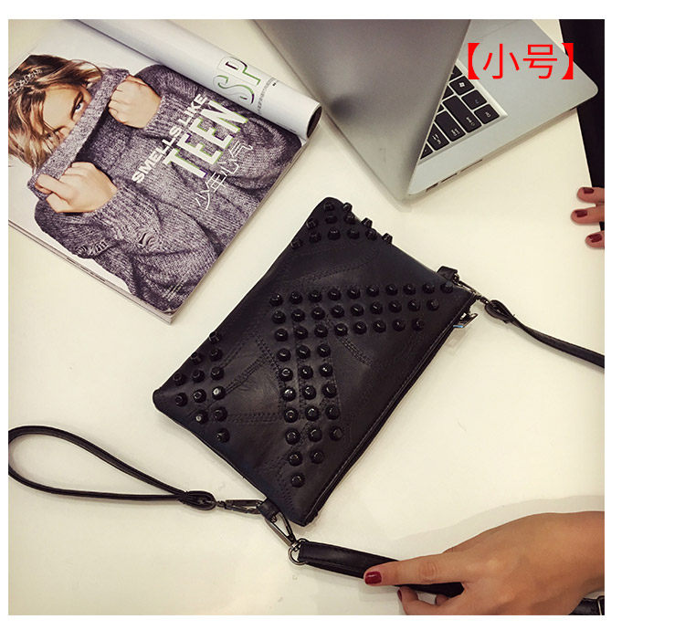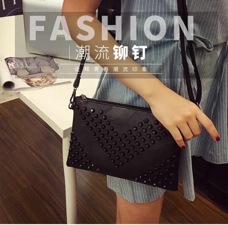 新款女包时尚韩版潮铆钉手拿包信封包单肩包斜挎包