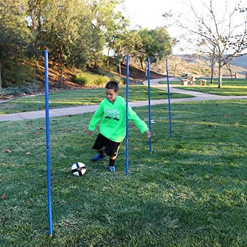 -. Feature : CONTENTS: [6] Red agility poles; [6] Blue agility poles; [1] Nylon carrying bag / MEASUREMENTS: 5-feet 3-inches tall; 1.25-inch diameter / DESIGN: Metal stake; PVC pole / Can be used on grass, sand, or dirt; Bases sold separately for hard surface use / Versatile tool for es, trainers, and sports teams