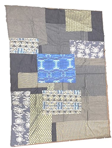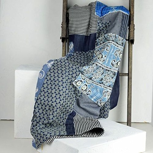 AllAsta Patchwork Qulit Throw Blanket Denim Indigo