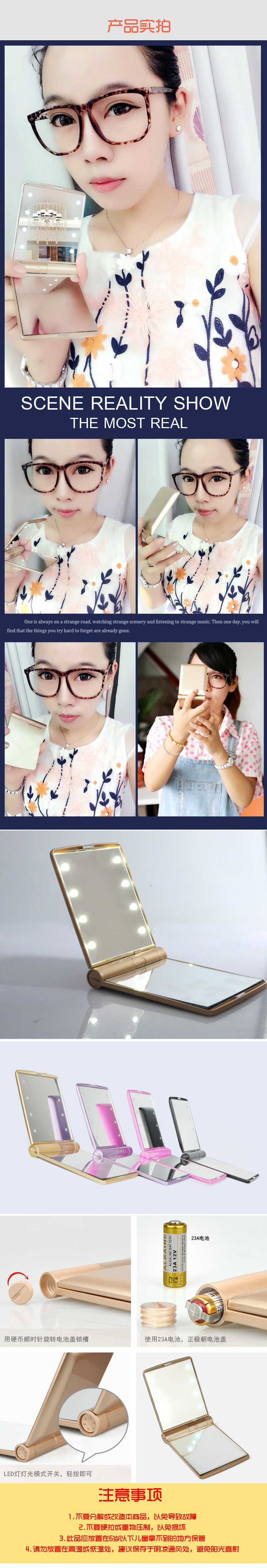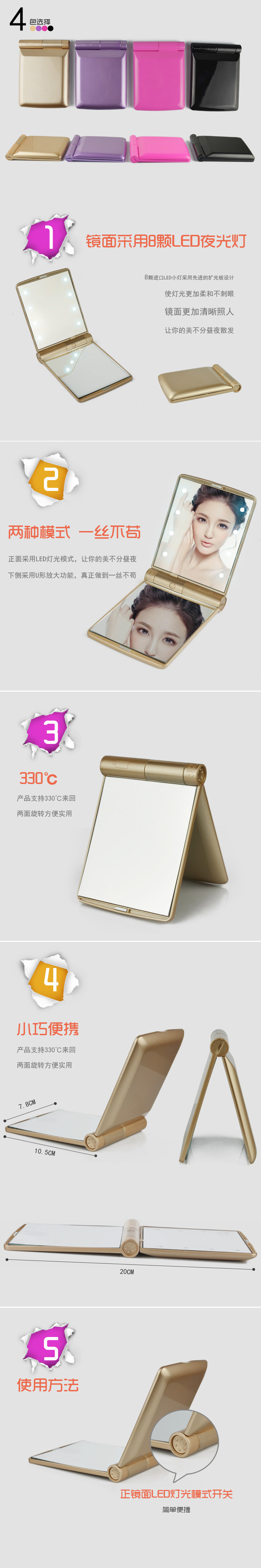 LED Make Up Mirror Cosmetic Folding Portable Compact Pocket with 8 LED Lights 1.100% Brand new and high quality 2.Material:ABS plastics 3.Color:Black,White,Pink,Purple (Please let us know what style you Color ,or we will send you Random Color!) 4.Quantity:1pcs LED Mirror(Exclude battery ,no battery) 5.11cmx8.5cmx1cm/4.33"x3.35"x0.39" 6.8 shine LED can be used to light up at night and dark 7.Small power consumption.Dry battery 12V 23A can be used for more than six months upon used three times a week. 8.Long life,every LED can be used for 100 thounsand hours Due to the difference between different monitors,the picture may not reflect the actual color of the item.Thank you! Package Including: 1 x Cosmetic Folding Mirror |