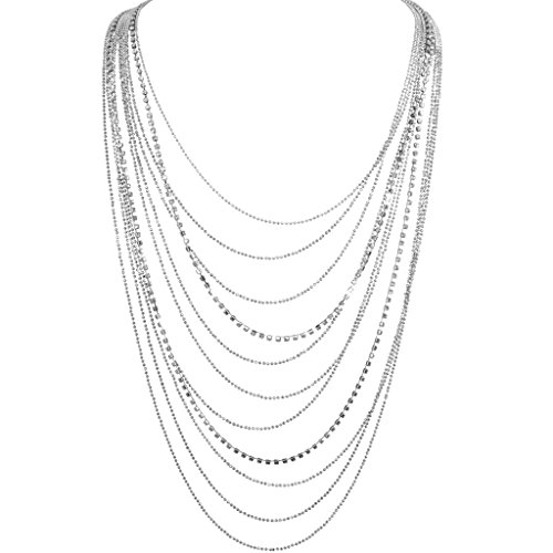 ELEGANT & STYLISH DESIGN - This multi-layer statement necklace features cascading strands of sparkly simulated diamonds.