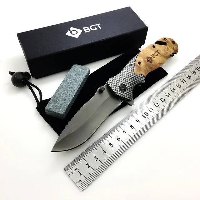 | [해외] X50 접는 나이프 야외 캠핑 사냥 전투 포켓 전술 생존 EDC 도구 9Cr18Mov 블레이드 나무 + 스틸 핸들 |
