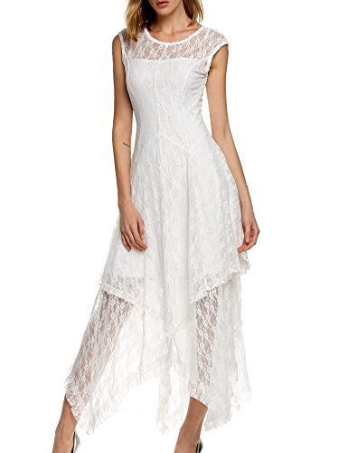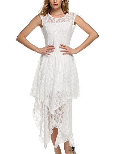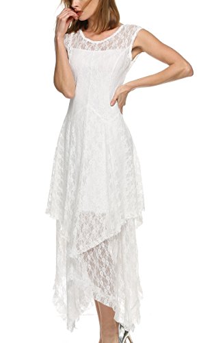Title : ACEVOG Women's Sexy Sleeveless Floral Lace Tiered Long Irregular Party Dress (S, White)