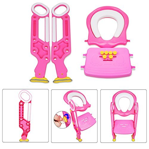 Studio : Coreykin Publisher : Coreykin Product Description Product Introduction: Our product is designed for helping adult to lift up the adult toilet lid and seat, put kid potty training seat on directly. It has 2 supporting legs landing steadily for children to use it. This product can not only help the adults but also improve the children's capability. Product specification: ·Item Weight: 5.3 pounds ·Dimensions: 25.4*14.6*3.5 inches ·Material: Plastic and 100% non-toxic ·Adaptation age: 24 months to 7 years old children Product advantage: ·Fold up and store it easily ·Long age cover range for use ·Use a coin to disassemble it ·Very convenient to clean them ·Good contours for anti-splash Package Included: ·1*Baby Toilet Seat ·1*Cushion ·1*Manual Note: You need to clean up the oil, water or other liquid/clutter on the floor before using to ensure the non slip effect of the foot pads. 0