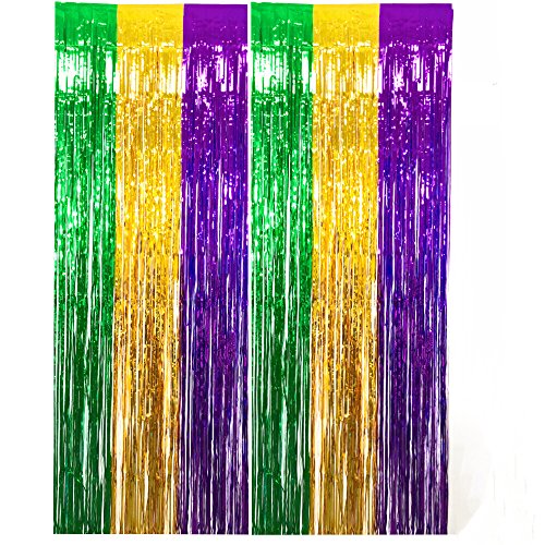 GIFTEXPRESS, Pack of 2 Mardi Gras Foil Fringe Curtains for Mardi Gras Party Photo Backdrop/ Party Backdrop/ Mardi Gras Decoration