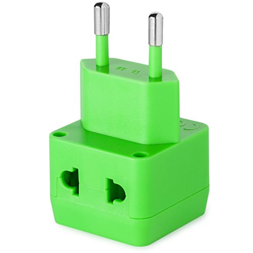 Perfect travel adapter with 2 universal outlets (2 prong & 3 prong) | Set comes with Green / Blue / White / Purple / Black adapters