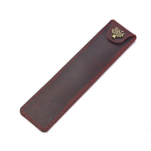 Chris.W Crazy Horse Leather Fountain Pen Case Bag Holder with Tree Shaped Button for SIngle Pen, 6.61 x 1.57 inches, Wine Red