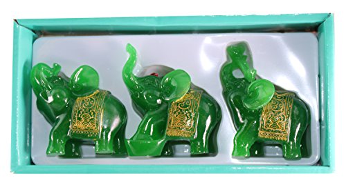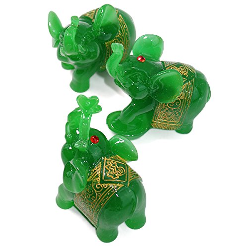 Feng Shui Set of 3 Jade Green Elephant Statues Wealth Lucky Figurines Home Decor Housewarming Congratulatory Gift US Seller