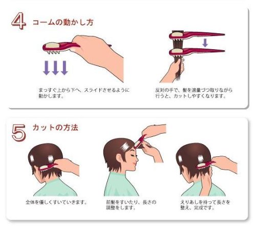 長時間じっとしていることが難しいお子様、幼いお子様がいるためなかなか美容院に行く時間の取れない方、また、ご高齢などで外出が大変な方、美容院での会話が億劫な方にもおすすめです。自らカット、スタイリングする手軽さと楽しさがあり、さらに経済的。初めてご使用になる方でも、ブラッシングするだけで手早く簡単に髪量を整えることができます。刃先にはガード(突起)部があり、安全性も重視しています。