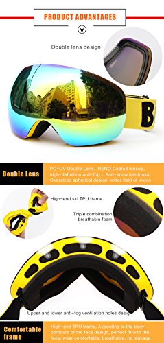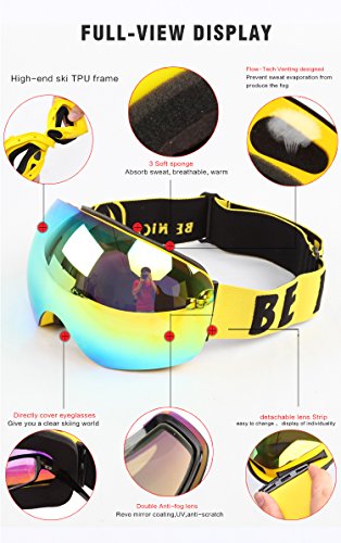 -. Brand : benice -. Feature : TPU frame and PC Lenses are almost unbreakable,so your face can get better protection. / Patented side buckle make user more convenient to replace the strap. / Super soft foam have Stronger buffering capacity,more comfortable ,more fit. / Flow-Tech Venting designed to reduce fogging and optimize flow of air over inside of lens. / Helmet compatible design and Double Layer Face Foam with micro fleece facing -. Label : FK Sports -. Manufacturer : FK Sports -. MPN : Snow45004700 -. PartNumber : Snow45004700 -. ProductGroup : Sports -. ProductTypeName : OUTDOOR_RECREATION_PRODUCT -. Publisher : FK Sports -. Studio : FK Sports -. Title : Benice Professional Snow Ski Goggles with tachable Dual Layer Lens Durable Anti Fogging Anti UV 400 OTG Comfortable Wide Vision Spherical Goggles 2 Sizes