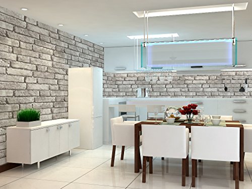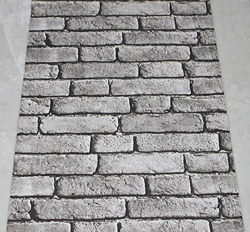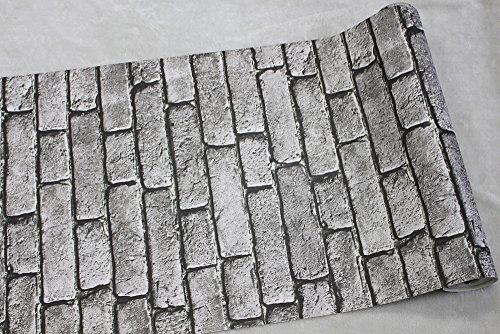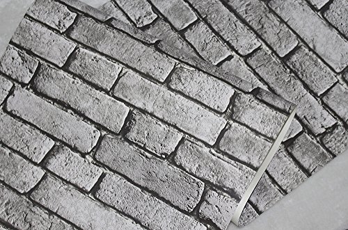 HaokHome 130105 Vintage Faux Brick Textured Wallpaper Roll Gray/Black/White 3D Vinyl Home Kitchen Bathroom Decoration 20.8" x 33ft