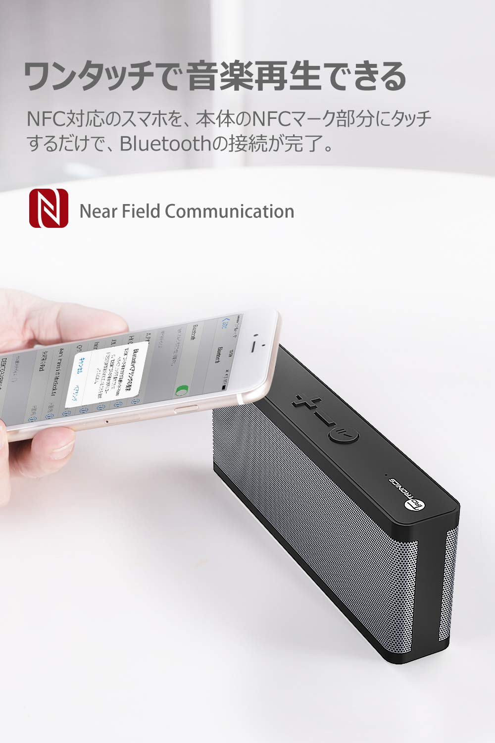 💿【タッチだけでBluetooth接続完了】Bluetooth接続は従来のペアリング方式以外、NFC近距離無線通信技術にも対応、iPhoneやXperiaなどNFC機能対応のスマホはスピーカー本体のNFCマークをタッチするだけでBluetooth接続完了。通信範囲は約10mで安定した音楽を心ゆくまでお楽しみ頂けます。