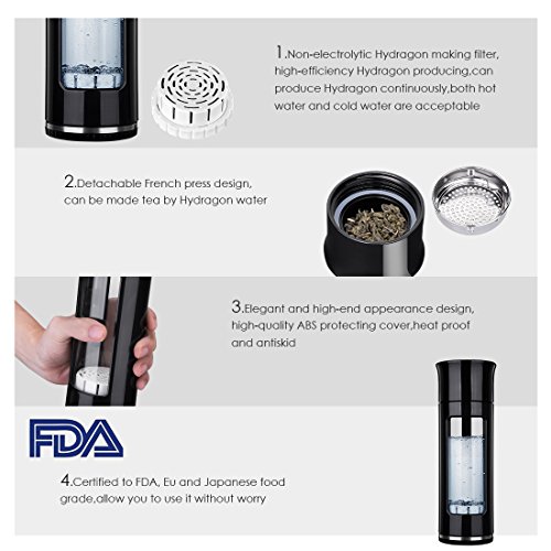 4.Dual functions: Hydrogen-enriched water bottle, hydrogen water maker, Tea infuser bottle,it'll be healthier to make teak by Hydrogen-water
