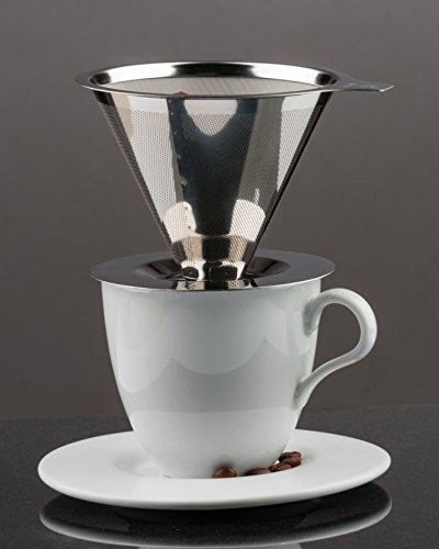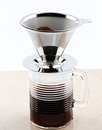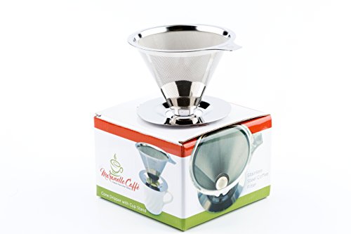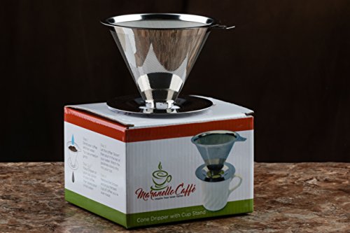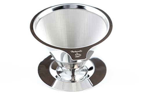 -. Brand : Maranello Caffé -. Color : Stainless Steel -. EAN : 0644391762866 -. Feature : Brew like a Barista - Extract full Robust flavor from your favorite coffee unspoiled by a paper filter for a delicious cup of craft brewed coffee. / Practice Responsible Brewing with our Eco Friendly Reusable Permanent Pour Over Cone Coffee Dripper which is a Paperless Filtration system that will cut down on waste. / Thoughtfully designed for universal fit on most cups, carafes, and thermoses. A great gift for coffee lovers and enthusiasts alike. / Easy to Use Easy to Clean - Brew, Drink, Rinse with warm water or put in dishwasher - convenient for anyone to use / Dual Filter Technology - Micro mesh inner filter combined with a laser cut outer filter ensures nothing but the perfect coffee flavor makes it through to your cup. -. Label : Maranello Caffé -. Manufacturer : Maranello Caffé -. Model : 644391762866 -. MPN : 644391762866 -. PackageQuantity : 1 -. PartNumber : 644391762866 -. ProductGroup : Kitchen -. ProductTypeName : KITCHEN -. Publisher : Maranello Caffé -. Size : 5.25" x 5.25" x 3.75" -. Studio : Maranello Caffé -. Title : Maranello Caffé - Stainless Steel Pour Over Paperless Cone Drip Coffee Maker - Reusable Filter Single Cup Dripper -. UPC : 644391762866