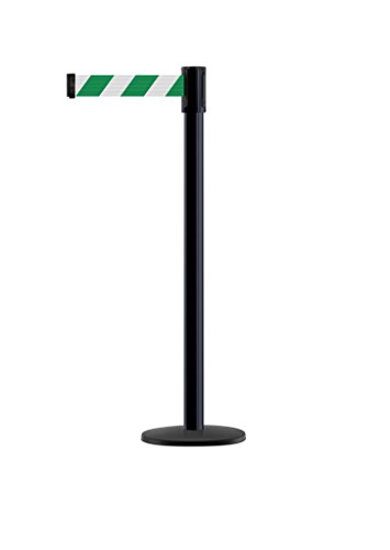 Tensabarrier - 890B-33-33-33-MAX-NO-D2X-C - black post, 2" wide, 13' length Chevron Green & White belt