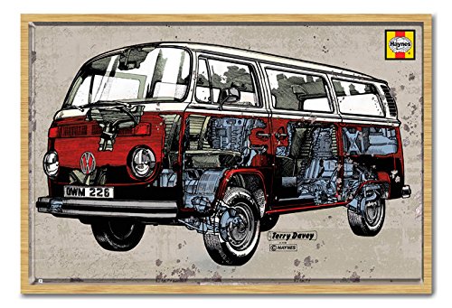 -. Title : VW Campervan Haynes Camper Poster Magnetic Notice Board Beech Framed - 96.5 x 66 cms (Approx 38 x 26 inches)