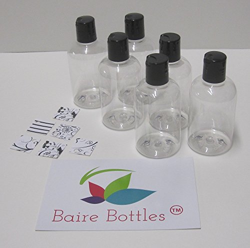 CLEAR PLASTIC REFILLABLE BOTTLES - 4 oz with BLACK HAND-PRESS FLIP DISC CAPS - For TRAVEL OR GIFTING Soap, Shampoo or Lotion - PET, BPA Free,...