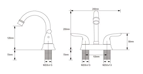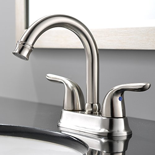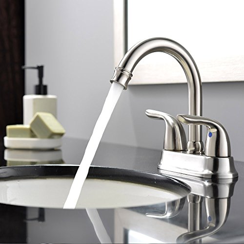 Ufaucet Modern 2 Handle Brushed Nickel Bathroom Sink Faucet, Vessel Vanity Sink Faucet Without Pop Up Drain