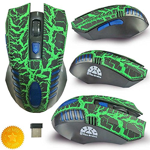 FlexBrains Wireless Mouse Optical 2.4GHz 6D Gaming Ergonomic Design With Custom 800/1200/1600 DPI Levels, Nano USB Receiver - High Resolution Sensor With Low Power Consumption - Fully Compatible With Microsoft PC, Laptop, Apple Mac, Macbook Pro, Macb