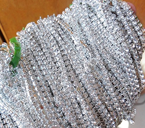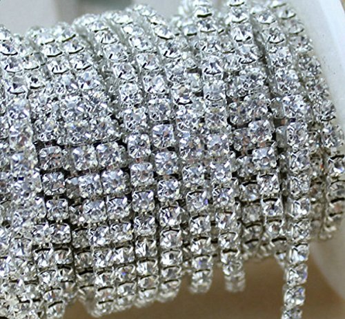 Aketek Crystal Rhinestone Close Chain Clear Trim 10 Yard Sewing Craft, 2mm - Silver color